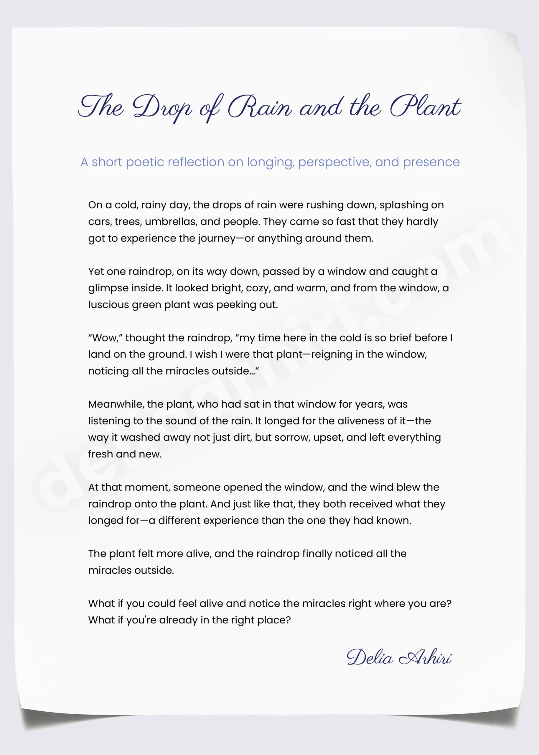 The Drop of Rain and the Plant - Poem